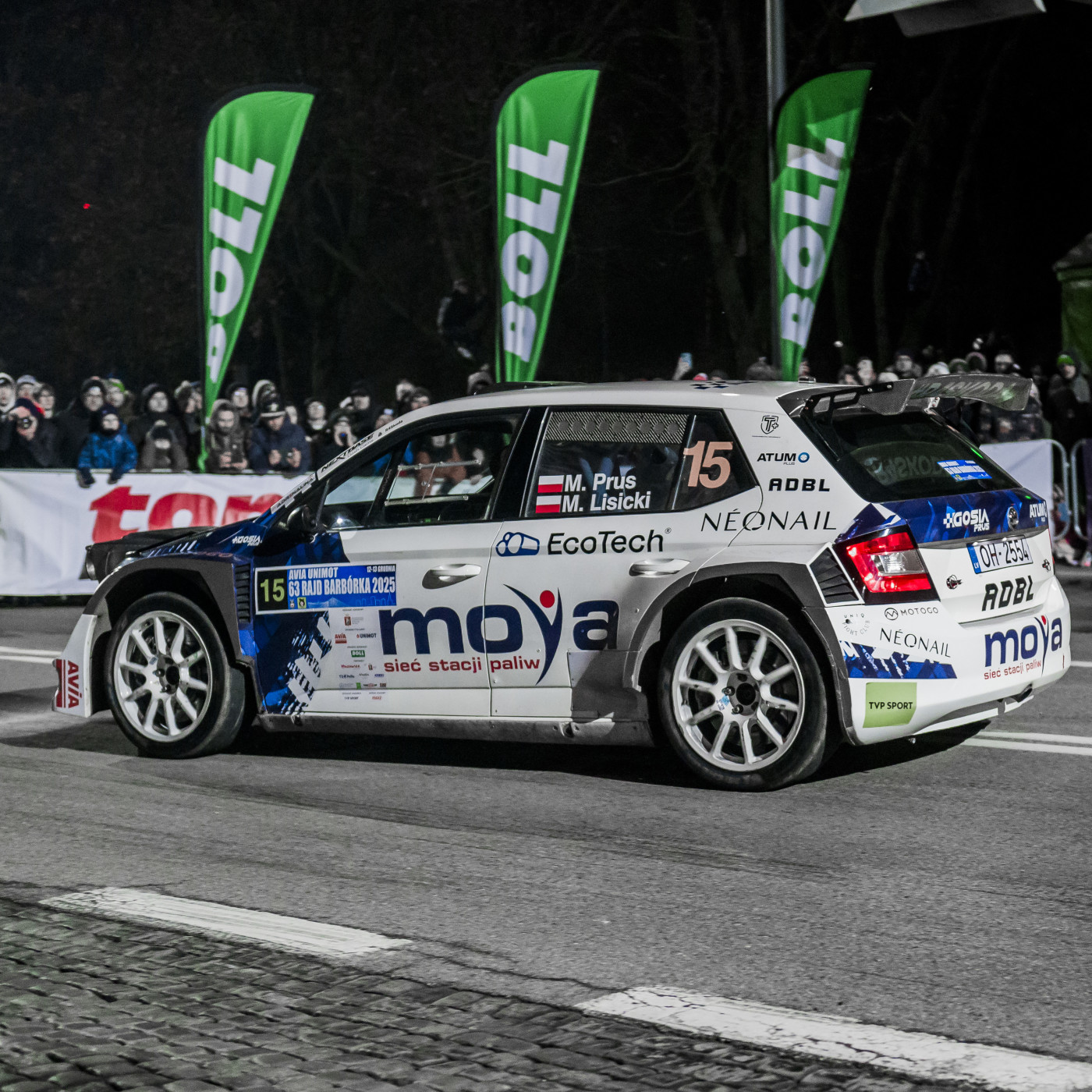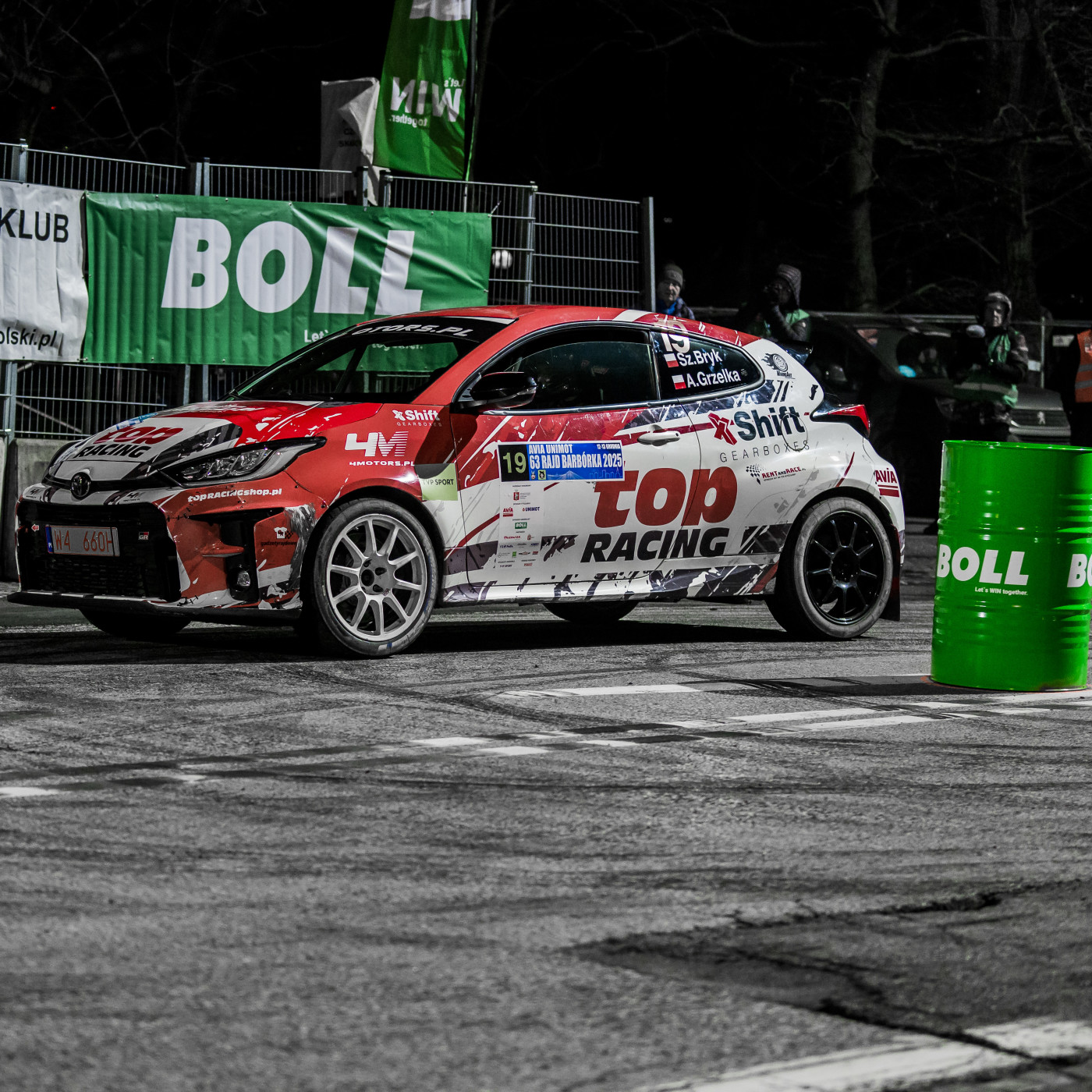 Byliśmy doskonale widoczni w jednym z najbardziej kultowych punktów rajdu - przy moście na Karowej. To właśnie tam pojawiły się charakterystyczne zielone bramy BOLL, które na dobre wpisały się w rajdowy krajobraz. Karowa od lat uchodzi za wizytówkę Barbórki i jeden z najbardziej widowiskowych fragmentów całej rywalizacji, przyciągający tłumy kibiców.